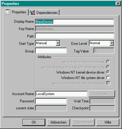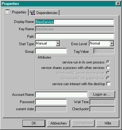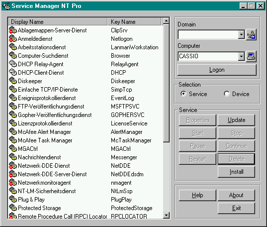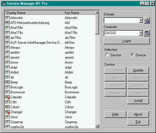 Here are some screenshots: service-administration device-administration install new service install new device This version of Service Manager will not be available as freeware. At this time we can't tell you the price. But the price will be a normal shareware fee. Please mail any questions to Torsten. |